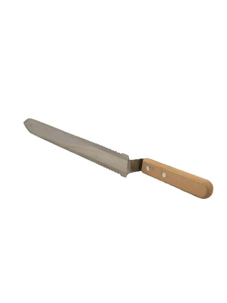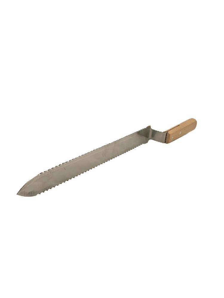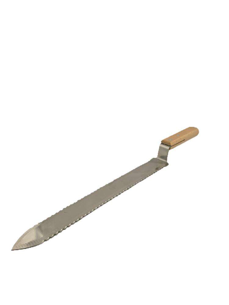 Nóż posiada ząbkowane brzegi z obu stron ,co znacznie ułatwia odsklepywanie ramek . Zdecydowanie pracę pszczelarza usprawnia szczególnie długie ostrze , pozwala ono dwoma sprawnymi ruchami odsklepić całą ramkę.